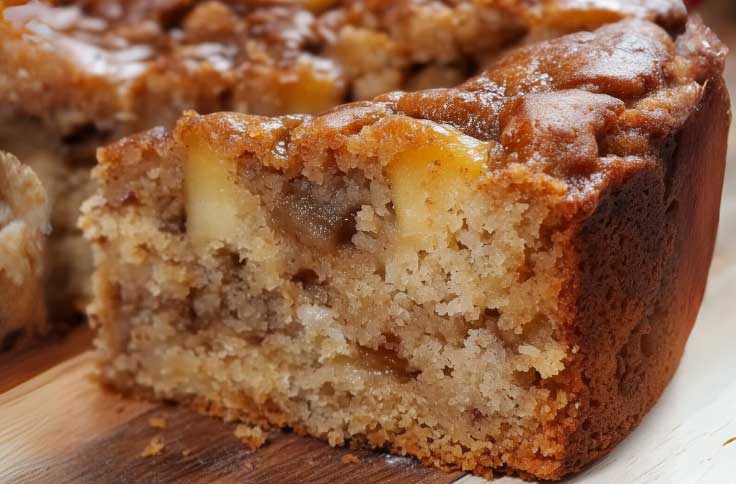 2. Nach Geschmack Zimt oder einen Schuss Honig oder Ahornsirup dazugeben. Den Teig in die vorbereitete Form füllen und backen, bis der Kuchen durch ist und eine schön goldene Kruste hat.